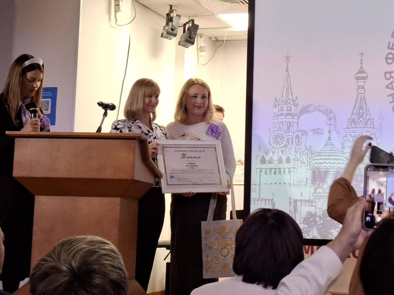 The Russian State Duma’s letters of appreciation were presented by Olga Timofeyeva, Chairwoman of the State Duma Committee on Development of Civil Society, Issues of Public Associations and Religious Organization, to Elena Barman, President of the Indian